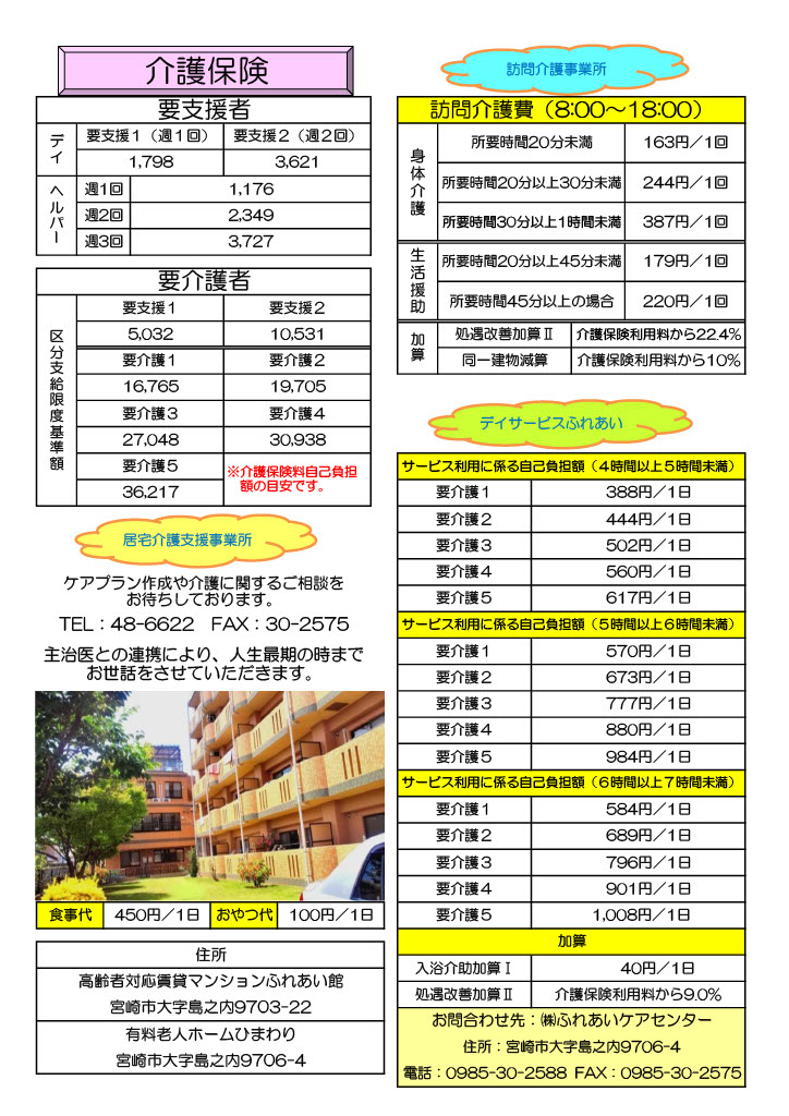 - ふれあい館の周辺環境は、少し足を延ばすと阿波岐原森林公園・動物園やシーガイア、江田神社など様々なライフスタイルに恵まれた立地です。敷地内には四季を感じる草木があるなど、ゆったりとした時間を過ごすことができます。もちろん生活面についても、敷地内に看護師などスタッフが常駐しておりますので安心して過ごすことができます。